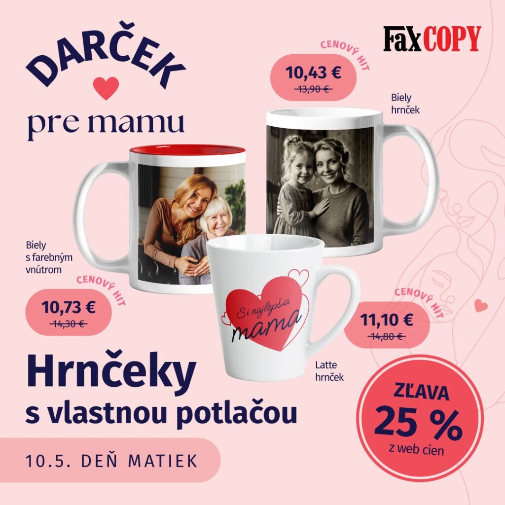 Pripravili sme pre vás výber najobľúbenejších darčekov na Deň matiek za špeciálne ceny. Zľava 30 % na prívesky a 25 % na fotoknihy či hrnčeky platí len do 10. 5. 2026.